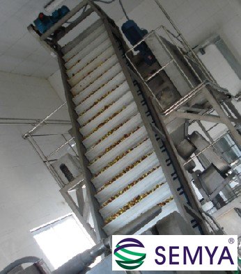 用二級(jí)坑循環(huán)水將紅棗從二級(jí)輸送果道始端輸送至二級(jí)坑處,在這個(gè)流通過程中使紅棗得到充分的浸泡、清洗,經(jīng)過隔柵,將水和紅棗分離,紅棗進(jìn)入一級(jí)提升工序,水流入二級(jí)坑循環(huán)池,由泵繼續(xù)打入二級(jí)輸送果道始端循環(huán)輸送紅棗。二級(jí)坑的循環(huán)水每天開機(jī)時(shí)使用自來水,生產(chǎn)過程中,根據(jù)二級(jí)循環(huán)水池的水位,將處理過的軟化水不斷的補(bǔ)二級(jí)循環(huán)水池,二級(jí)循環(huán)水池多余的循環(huán)水進(jìn)入一級(jí)坑,保持二級(jí)坑循環(huán)水的干凈衛(wèi)生。