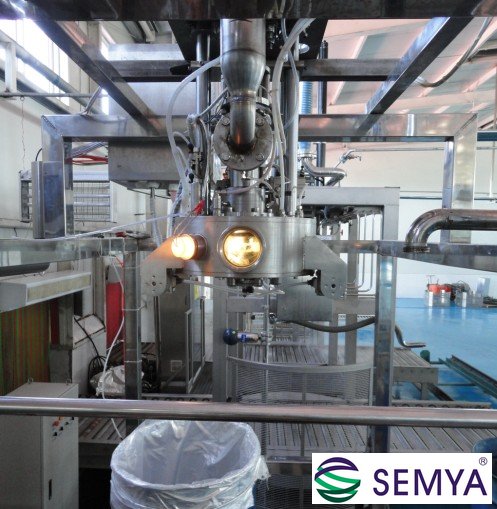 該工序采用FBR無菌灌裝機(jī),濃縮果汁經(jīng)管道輸送至無菌灌裝機(jī),利用灌裝機(jī)灌裝頭腔室溫度≥95℃的滅菌條件將果汁灌入無菌袋中(外圍為保護(hù)袋和鋼桶),灌裝重量通過質(zhì)量流量計(jì)來控制。